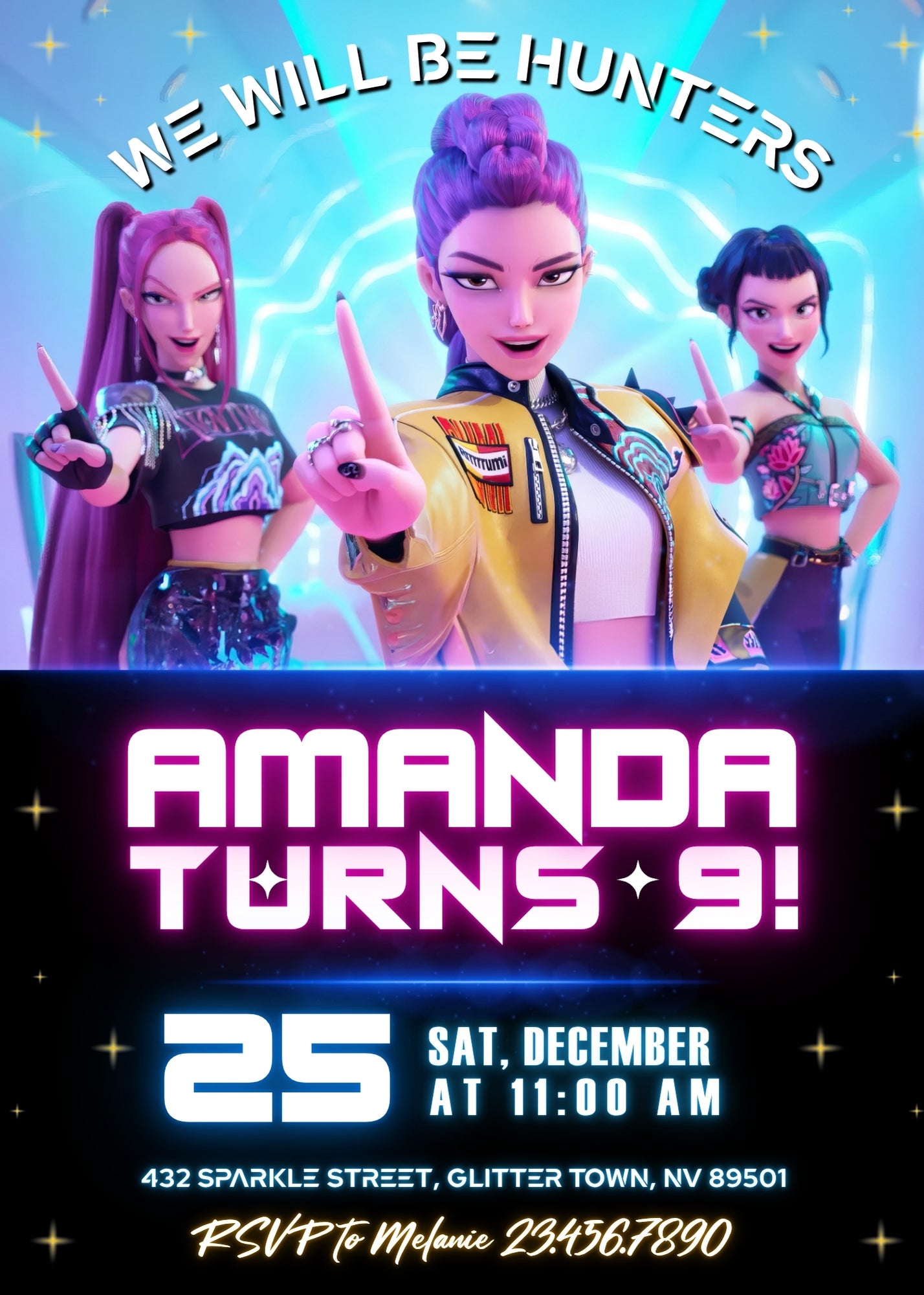 Related Tags: kpop demon hunter, kpop birthday, kpop invite, demon hunter party, kpop party, kpop invitation, kpop theme, demon invite, kpop decor, bts invite, kpop party decor, kpop bday, kpop card